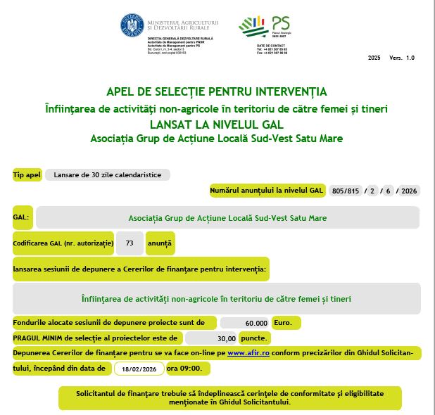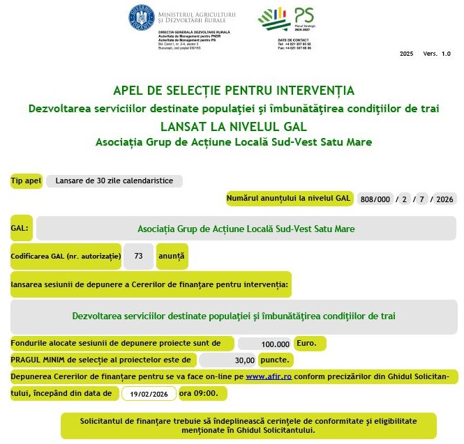 Agricultura are o importanţă deosebită în economia GAL, ocupând aproximativ o treime a populaţiei active. Având în vedere numărul relativ scăzut al firmelor active din teritoriu, vom sprijini înfiinţarea start-up-urilor neagricole, atât în domeniul serviciilor cât şi a producţiei. La nivelul zonei turismul este bine reprezentat, însă zona de servicii are nevoie de sprijin pentru dezvoltare. Pentru păstrarea identității culturale unice ale comunității vom susține acțiuni de conservare a patrimoniului local. Ne propunem creșterea calității vieții pentru populația din teritoriu și prin susținerea dezvoltării de servicii publice/sociale destinate populației, prin investiții în infrastructura destinată dezvoltării serviciilor de suport pentru persoanele cu nevoi sociale – vârstnici, minorități, copii, persoane fără educație, investiții în protejarea mediului. Considerăm că toate aceste acțiuni pot fi realizate cu succes numai ÎMPREUNĂ, la nivel de GAL și la nivel de COMUNITATE.