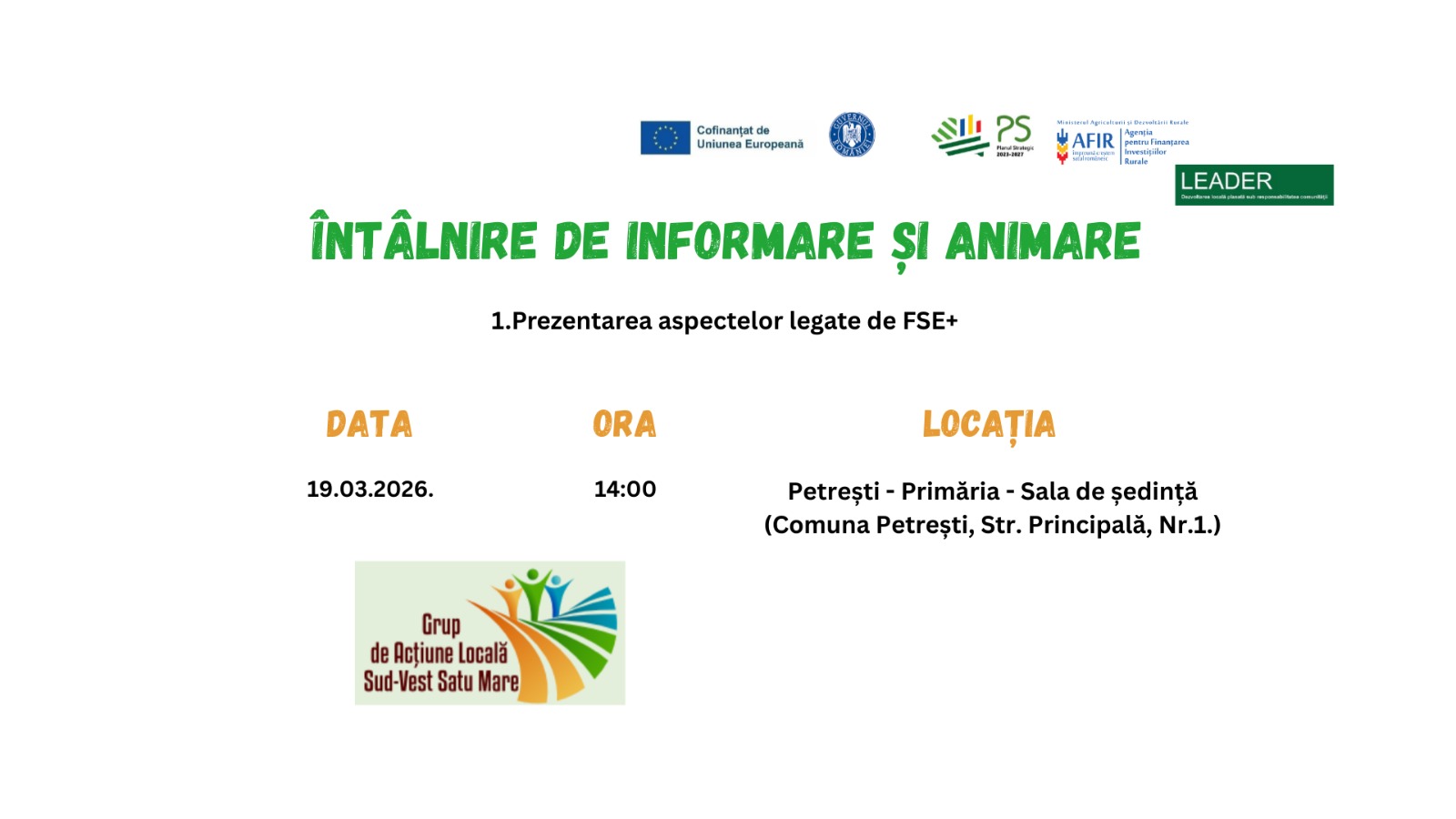 În perioada 2014-2020 Asociația Grup de Acțiune Locală Sud-Vest Satu Mare reunește 96 de membrii din care 21 Unități administrativ – teritoriale, 1 Unitate administrativ – județean, 49 parteneri privați (reprezentanți ai unori societăți comerciale, întreprinderi individuale, persoane fizice autorizate și societăți cooperative), iar 25 de membri reprezintă sectorul civil (ONG-uri, asociații sportive, unități de cult).